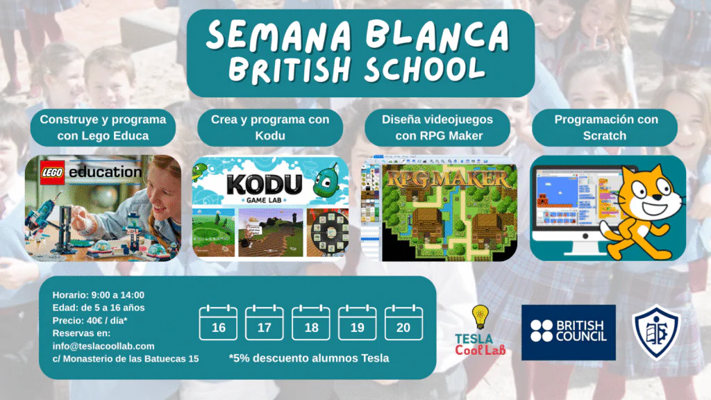 16-20 FEBRERO Semana Blanca (Colegios Britanicos y otros). 4 Campamentos: Lego Educa, Kodu Game Lab, RPG Maker, Scratch